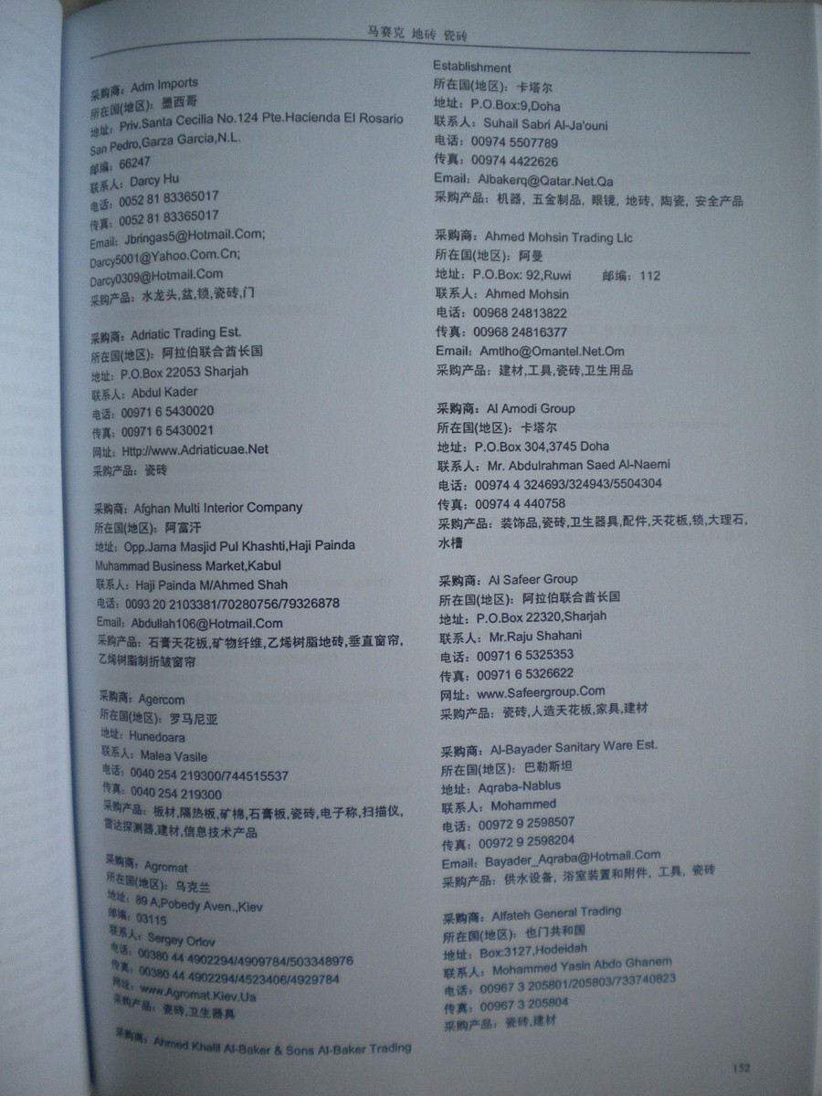 書刊簡(jiǎn)介:《全球采商黃頁(yè)》系列叢書是由全球最活躍的專業(yè)買家及重要國(guó)際性展會(huì)的到會(huì)采購(gòu)商名片信息匯編而成,包含三十多個(gè)行業(yè)分類,匯集了各類產(chǎn)品的買家信息。其中收錄的每家采購(gòu)商信息均是我們通過與買家面對(duì)面的登記整理收集而成,采購(gòu)意向明確,針對(duì)性強(qiáng)。為了確保信息的準(zhǔn)確性和時(shí)效性,我們定期進(jìn)行跟進(jìn)、回訪、補(bǔ)充及更新工作。每家采購(gòu)商信息包括國(guó)別、公司名稱、聯(lián)系人、地址、電話、傳真、電郵、網(wǎng)址、采購(gòu)產(chǎn)品等詳細(xì)內(nèi)容,每?jī)?cè)《黃頁(yè)》約有兩千家左右的采購(gòu)商信息。在當(dāng)前國(guó)際出口形勢(shì)日趨嚴(yán)峻的環(huán)境下,如何降低成本開拓國(guó)際市場(chǎng),是每個(gè)出口企業(yè)急需尋找的答案,我們相信通過我們10多年的外貿(mào)信息服務(wù)經(jīng)驗(yàn)和最新的國(guó)際買家資源服務(wù),將會(huì)為您拓展全球市場(chǎng)提供最直接有效的幫助。專業(yè)對(duì)口的買家信息一定會(huì)幫助貴公司打開更廣闊的外貿(mào)市場(chǎng)!