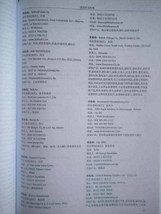 資料如何收集:在各大展會上,我們免費向到會采購商提供他們需要的最新產(chǎn)品雜志和光盤,我們也同時向他們派發(fā)帶有我們網(wǎng)站LOGO的精美禮品,這些最新的中國供應商的信息,對他們很有幫助,采購商會留下他們的名片,填寫詳細的產(chǎn)品求購信息,以期望得到更多的供應商的信息。收集到這些第一手的原始外商資料后,我們客戶服務中心立刻將名片掃描作成圖片,將產(chǎn)品采購信息做成數(shù)據(jù)庫,將采購商資料按行業(yè)不同,匯編成冊,出版發(fā)行《全球采購商黃頁》系列。