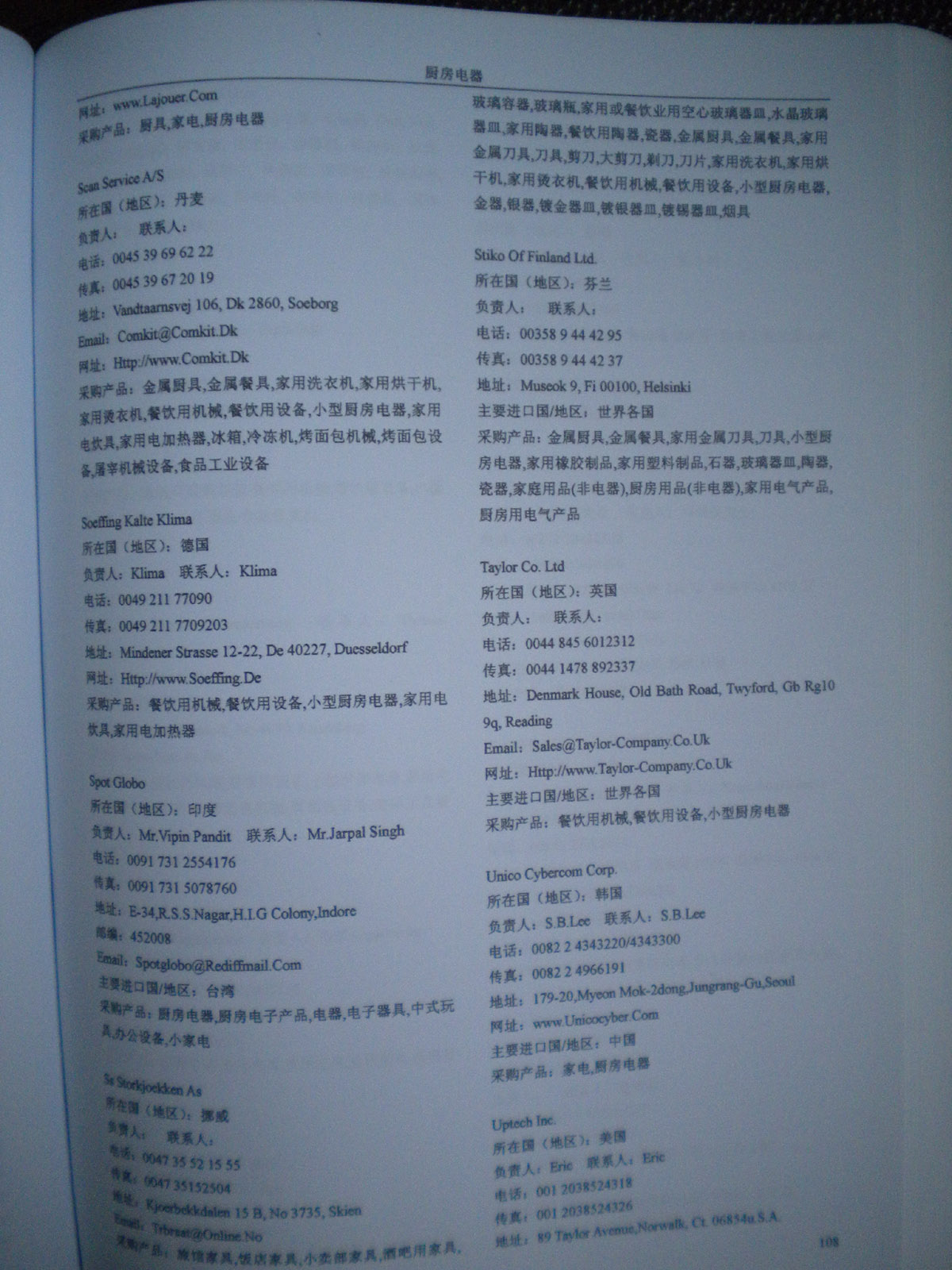 書刊簡(jiǎn)介:《全球采商黃頁》系列叢書是由全球最活躍的專業(yè)買家及重要國(guó)際性展會(huì)的到會(huì)采購(gòu)商名片信息匯編而成,包含三十多個(gè)行業(yè)分類,匯集了各類產(chǎn)品的買家信息。其中收錄的每家采購(gòu)商信息均是我們通過與買家面對(duì)面的登記整理收集而成,采購(gòu)意向明確,針對(duì)性強(qiáng)。為了確保信息的準(zhǔn)確性和時(shí)效性,我們定期進(jìn)行跟進(jìn)、回訪、補(bǔ)充及更新工作。每家采購(gòu)商信息包括國(guó)別、公司名稱、聯(lián)系人、地址、電話、傳真、電郵、網(wǎng)址、采購(gòu)產(chǎn)品等詳細(xì)內(nèi)容,每?jī)?cè)《黃頁》約有兩千家左右的采購(gòu)商信息。在當(dāng)前國(guó)際出口形勢(shì)日趨嚴(yán)峻的環(huán)境下,如何降低成本開拓國(guó)際市場(chǎng),是每個(gè)出口企業(yè)急需尋找的答案,我們相信通過我們10多年的外貿(mào)信息服務(wù)經(jīng)驗(yàn)和最新的國(guó)際買家資源服務(wù),將會(huì)為您拓展全球市場(chǎng)提供最直接有效的幫助。專業(yè)對(duì)口的買家信息一定會(huì)幫助貴公司打開更廣闊的外貿(mào)市場(chǎng)!