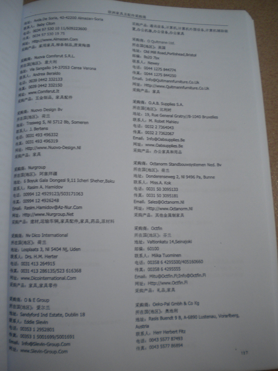 資料如何收集:在各大展會上,我們免費向到會采購商提供他們需要的最新產(chǎn)品雜志和光盤,我們也同時向他們派發(fā)帶有我們網(wǎng)站LOGO的精美禮品,這些最新的中國供應(yīng)商的信息,對他們很有幫助,采購商會留下他們的名片,填寫詳細的產(chǎn)品求購信息,以期望得到更多的供應(yīng)商的信息。收集到這些第一手的原始外商資料后,我們客戶服務(wù)中心立刻將名片掃描作成圖片,將產(chǎn)品采購信息做成數(shù)據(jù)庫,將采購商資料按行業(yè)不同,匯編成冊,出版發(fā)行《全球采購商黃頁》系列。