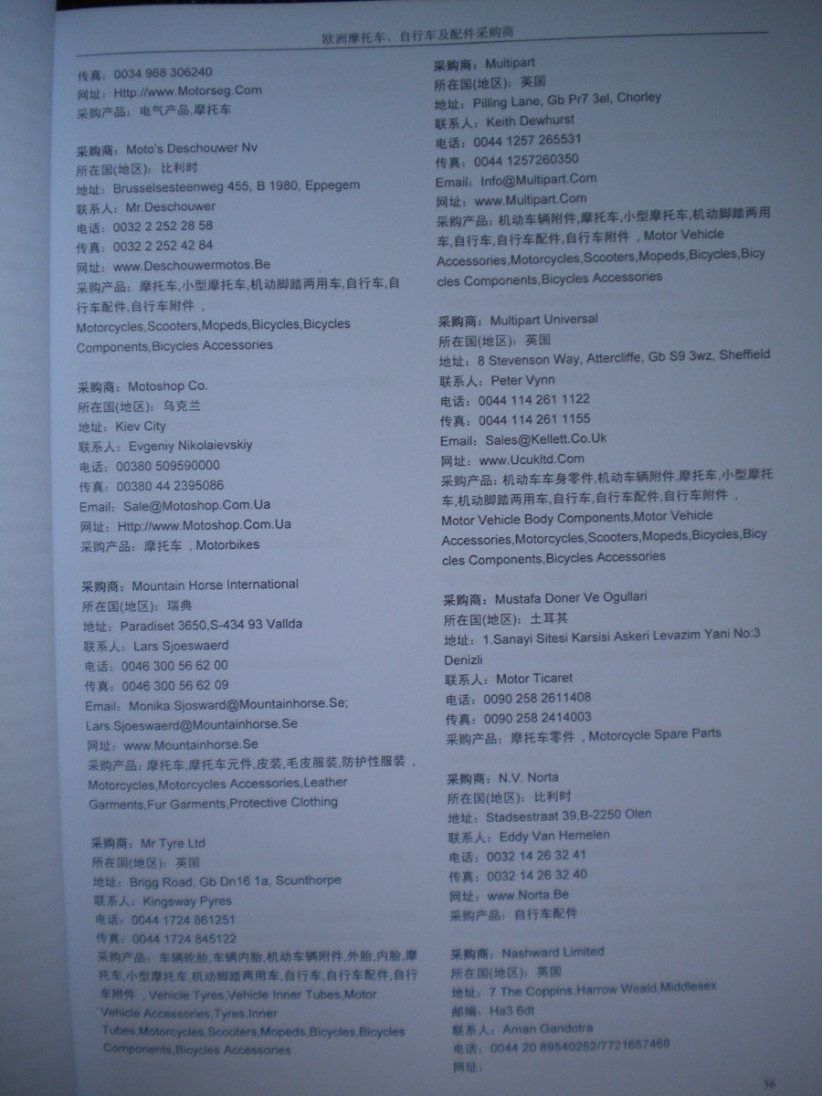 全球摩托車、自行車及配件采購商(書刊)共一冊原價580元/冊,價格:350元