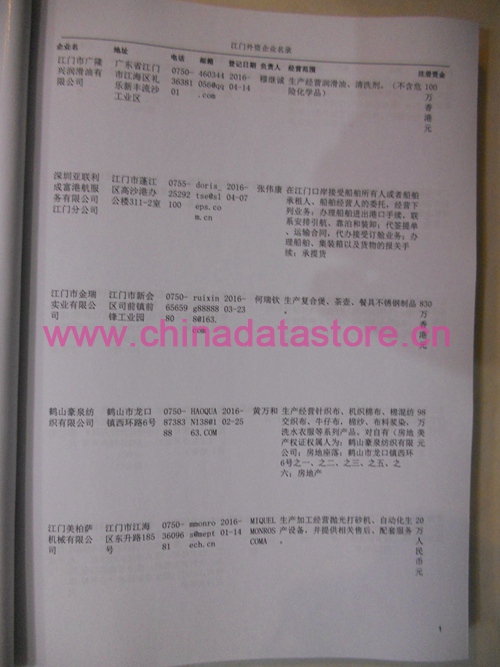 江門某個(gè)行業(yè)外資企業(yè)黃頁 | 如機(jī)械、機(jī)電、化工等行業(yè) | 80% | RMB:300元 |