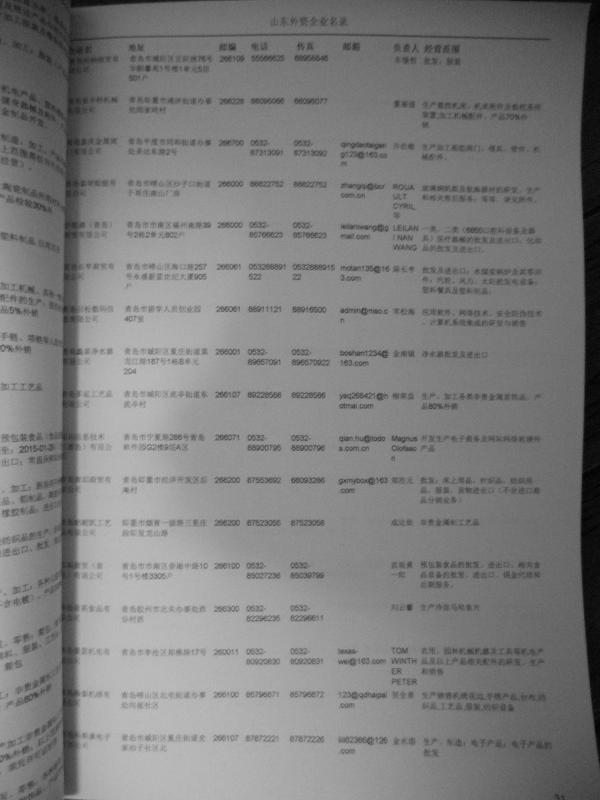 最新濟南外資企業(yè)黃頁涵蓋了濟南外商獨資企業(yè)、中外合資經(jīng)營企業(yè)以及港、澳、臺資企業(yè),包括濟南臺資日企企業(yè)黃頁,濟南外企黃頁具體內(nèi)容包括:企業(yè)名稱、地址、電話、傳真、郵箱、經(jīng)營范圍、注冊資金等信息;濟南外資企業(yè)名單里面的企業(yè)都一些中外合資的大企業(yè),這些公司經(jīng)濟實力都比較雄厚,出口產(chǎn)品也比較多,業(yè)務(wù)范圍都比較廣,跟他們開展業(yè)務(wù)往來都比較容易;有了濟南日企臺企黃頁開展業(yè)務(wù)也有了針對性,也省去了盲目去尋找客戶名單而浪費的時間了,工作效率也會有很大的提高.歡迎需要的客戶及時聯(lián)系我們!