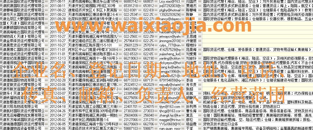 天津貨運代理公司名單數(shù)據(jù)為Excel格式,信息可任意修改、復(fù)制、打印、導(dǎo)出及導(dǎo)入到傳真、郵件群發(fā)等軟件中,無任何限制。