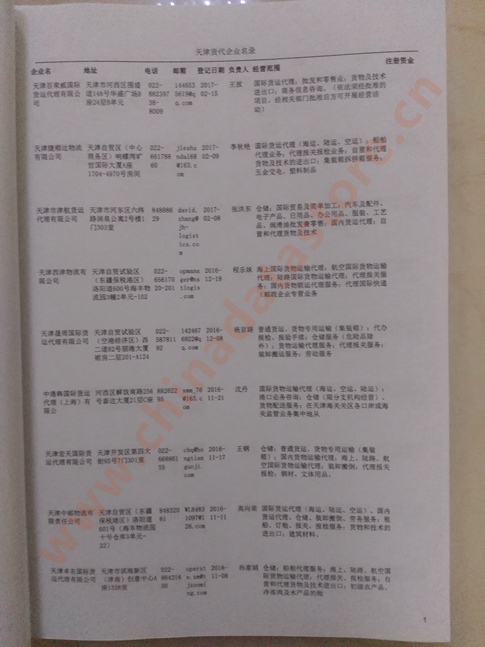 天津貨運公司黃頁包括:企業(yè)名稱、負(fù)責(zé)人聯(lián)系方式、企業(yè)電話、傳真、Email、經(jīng)營范圍、地址、郵編等信息。