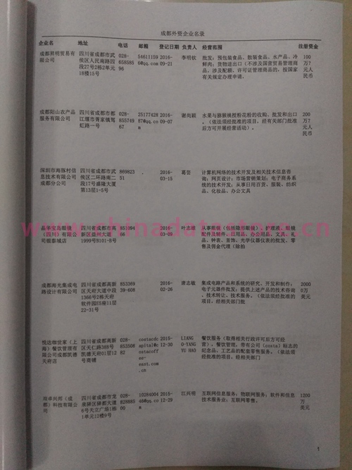 成都外資企業(yè)黃頁 所有成都外企黃頁 80% RMB:800元