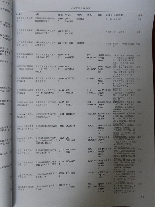 某省或直轄市 | 如上海、浙江餐廚用具企業(yè)名單 | 80% - 90% | 500元 | 附贈(zèng)一冊(cè)餐廚用具紙質(zhì)印刷品 |