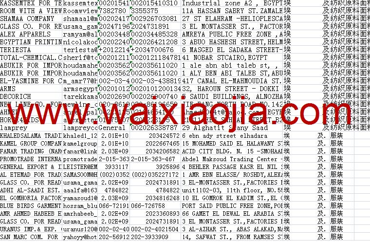 埃及采購商名單數(shù)據(jù)為Excel格式,信息可任意修改、復(fù)制、打印、導出及導入到傳真、郵件群發(fā)等軟件中,無任何限制。