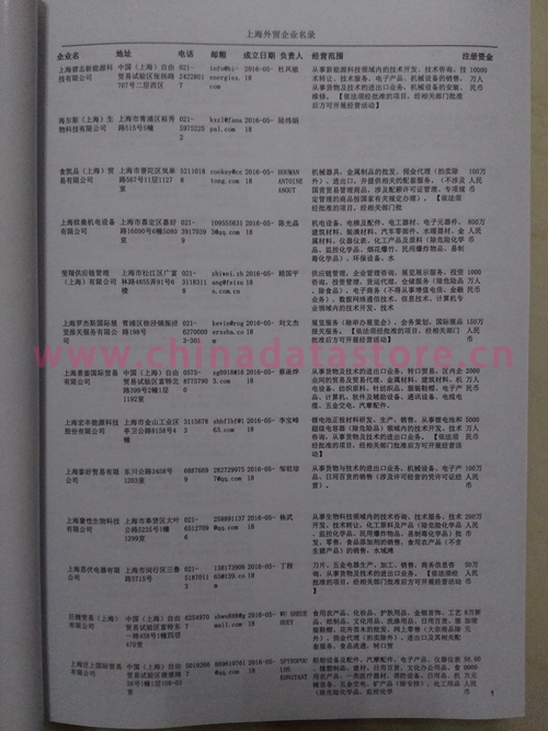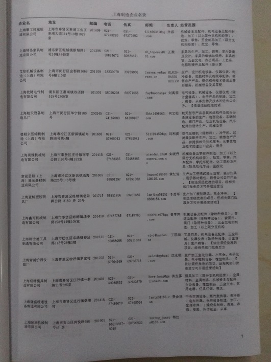2021版最新上海企業(yè)黃頁包括《上海制造企業(yè)黃頁》、《上海貿(mào)易企業(yè)黃頁》、《上海民營企業(yè)黃頁》、《上海外資企業(yè)黃頁》、《上海外貿(mào)企業(yè)黃頁》共五冊,現(xiàn)優(yōu)惠價:280元/冊。每冊內(nèi)容包括:單位名稱、地址、郵編、電話、傳真、郵箱、經(jīng)營范圍等;上海企業(yè)黃頁涵蓋了近幾年來最新成立的、有一定規(guī)模的企業(yè),具有非常高的營銷價值。有了這套黃頁開展業(yè)務(wù)也有了針對性,也省去了盲目去尋找客戶名單而浪費的時間了,工作效率也會有很大的提高。歡迎需要上海企業(yè)黃頁的朋友及時聯(lián)系我們!