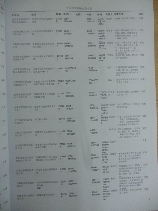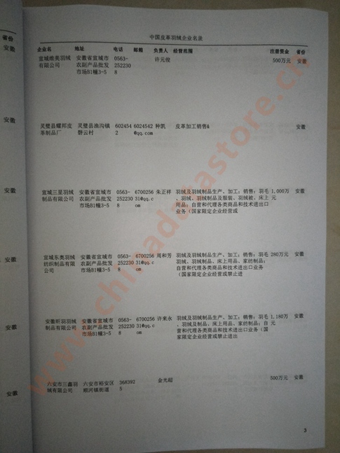 某省或直轄市 | 如上海、浙江皮革毛皮羽絨企業(yè)名單 | 80% - 90% | 600元 | 附贈(zèng)一冊(cè)皮革毛皮羽絨紙質(zhì)印刷品 |