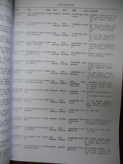 2021版最新汕頭企業(yè)黃頁包括《汕頭制造企業(yè)黃頁》、《汕頭貿(mào)易企業(yè)黃頁》、《汕頭民營(yíng)企業(yè)黃頁》、《汕頭外資企業(yè)黃頁》、《汕頭外貿(mào)企業(yè)黃頁》共五冊(cè),現(xiàn)優(yōu)惠價(jià):280元/冊(cè)。每?jī)?cè)內(nèi)容包括:?jiǎn)挝幻Q、地址、郵編、電話、傳真、郵箱、經(jīng)營(yíng)范圍等;汕頭企業(yè)黃頁涵蓋了近幾年來最新成立的、有一定規(guī)模的企業(yè),具有非常高的營(yíng)銷價(jià)值。有了這套黃頁開展業(yè)務(wù)也有了針對(duì)性,也省去了盲目去尋找客戶名單而浪費(fèi)的時(shí)間了,工作效率也會(huì)有很大的提高。歡迎需要汕頭企業(yè)黃頁的朋友及時(shí)聯(lián)系我們!