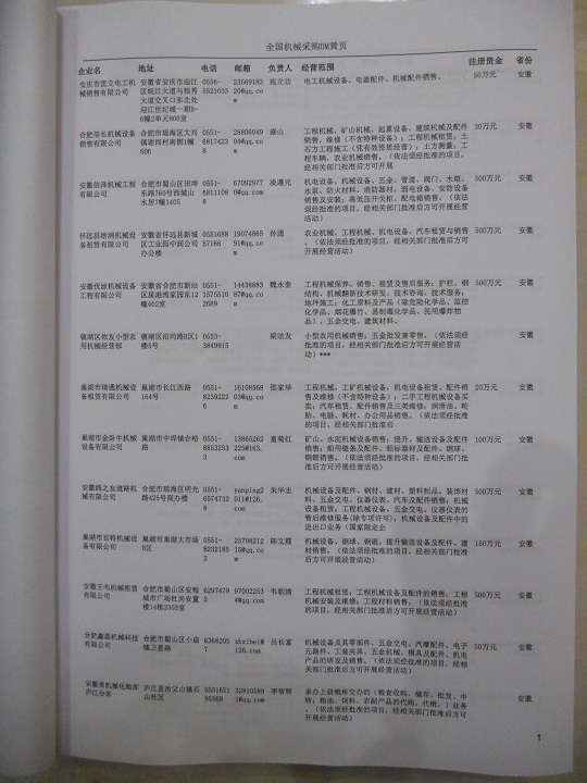 2024年新版中國(guó)機(jī)械采購(gòu)企業(yè)黃頁(yè),收錄了全國(guó)各地經(jīng)營(yíng)范圍涉及機(jī)械產(chǎn)品的貿(mào)易企業(yè),這些都是頗具實(shí)力的機(jī)械產(chǎn)品的中國(guó)采購(gòu)商。黃頁(yè)內(nèi)容包含:企業(yè)名稱、地址、電話、傳真、郵箱、經(jīng)營(yíng)范圍、省份、注冊(cè)資金等信息。該套黃頁(yè)包含一個(gè)黃頁(yè)光碟加一冊(cè)紙質(zhì)書刊,全國(guó)價(jià)格:1500元,省/直轄市價(jià)格:400元,城市價(jià)格:200元,共收錄了全國(guó)各地大概63139(統(tǒng)計(jì)日期:2018.1)家機(jī)械產(chǎn)品采購(gòu)企業(yè)。黃頁(yè)光碟中是EXCEL格式,信息可任意修改、復(fù)制、打印、導(dǎo)出及導(dǎo)入到傳真、郵件群發(fā)等軟件中,無(wú)任何限制。