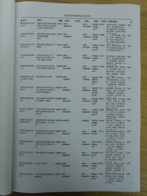 中國(guó)皮革羽絨采購(gòu)企業(yè)名錄