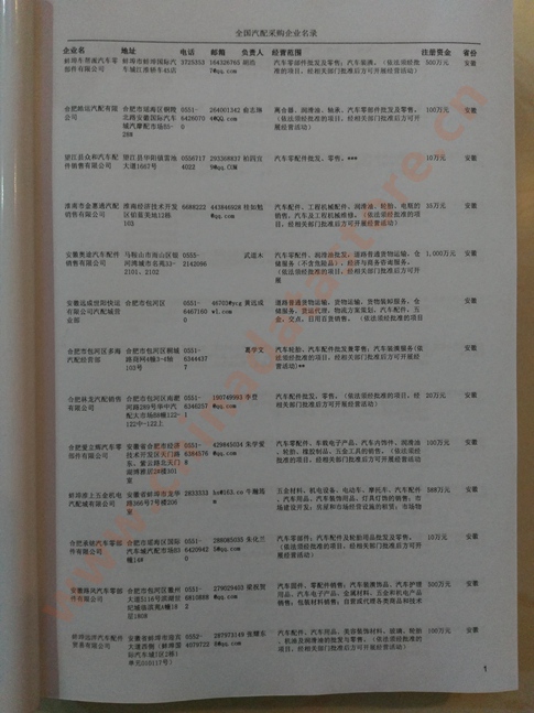 2024年新版中國汽配采購企業(yè)黃頁,收錄了全國各地經營范圍涉及汽配產品的貿易企業(yè),這些都是頗具實力的汽配產品的中國采購商。黃頁內容包含:企業(yè)名稱、地址、電話、傳真、郵箱、經營范圍、省份、注冊資金等信息。該套黃頁包含一個黃頁光碟加一冊紙質書刊,全國價格:1500元,省/直轄市價格:400元,城市價格:200元,共收錄了全國各地大概8952(統(tǒng)計日期:2018.1)家汽配產品采購企業(yè)。黃頁光碟中是EXCEL格式,信息可任意修改、復制、打印、導出及導入到傳真、郵件群發(fā)等軟件中,無任何限制。