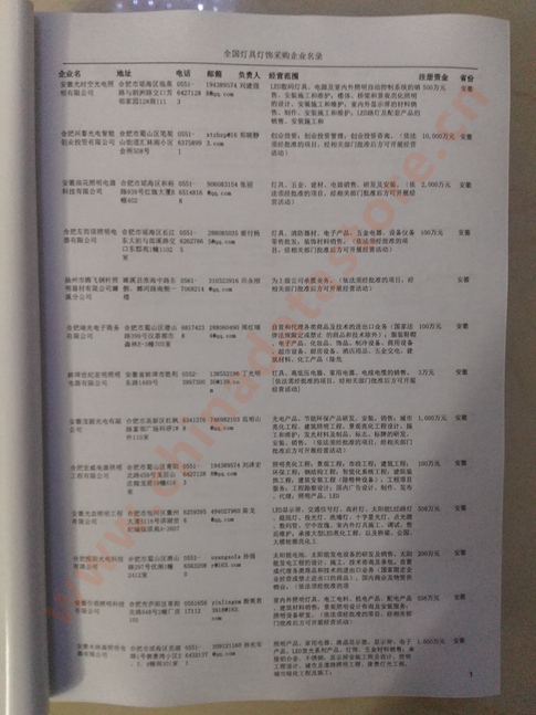 2024年新版中國燈具燈飾采購企業(yè)黃頁,收錄了全國各地經(jīng)營范圍涉及燈具燈飾產(chǎn)品的貿(mào)易企業(yè),這些都是頗具實(shí)力的燈具燈飾產(chǎn)品的中國采購商。黃頁內(nèi)容包含:企業(yè)名稱、地址、電話、傳真、郵箱、經(jīng)營范圍、省份、注冊資金等信息。該套黃頁包含一個(gè)黃頁光碟加一冊紙質(zhì)書刊,全國價(jià)格:1500元,省/直轄市價(jià)格:400元,城市價(jià)格:200元,共收錄了全國各地大概22857(統(tǒng)計(jì)日期:2018.1)家燈具燈飾產(chǎn)品采購企業(yè)。黃頁光碟中是EXCEL格式,信息可任意修改、復(fù)制、打印、導(dǎo)出及導(dǎo)入到傳真、郵件群發(fā)等軟件中,無任何限制。