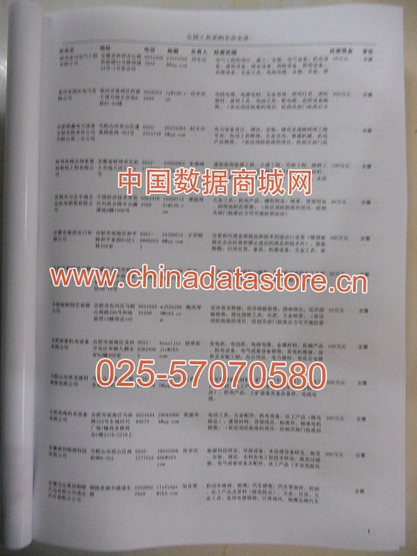 2024年新版中國工具采購企業(yè)黃頁,收錄了全國各地經(jīng)營范圍涉及工具產(chǎn)品的貿易企業(yè),這些都是頗具實力的工具產(chǎn)品的中國采購商。黃頁內容包含:企業(yè)名稱、地址、電話、傳真、郵箱、經(jīng)營范圍、省份、注冊資金等信息。該套黃頁包含一個黃頁光碟加一冊紙質書刊,全國價格:1500元,省/直轄市價格:400元,城市價格:200元,共收錄了全國各地大概2687(統(tǒng)計日期:2018.1)家工具產(chǎn)品采購企業(yè)。黃頁光碟中是EXCEL格式,信息可任意修改、復制、打印、導出及導入到傳真、郵件群發(fā)等軟件中,無任何限制。