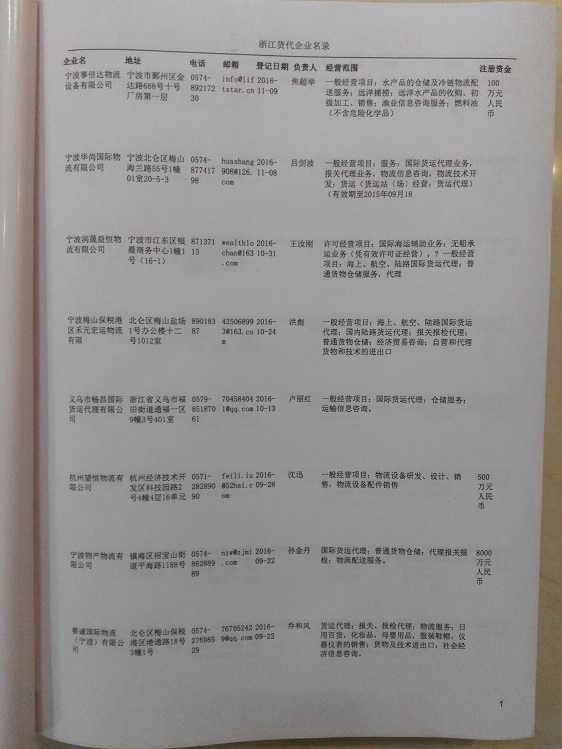 浙江貨運公司黃頁包括:企業(yè)名稱、負責(zé)人聯(lián)系方式、企業(yè)電話、傳真、Email、經(jīng)營范圍、地址、郵編等信息。