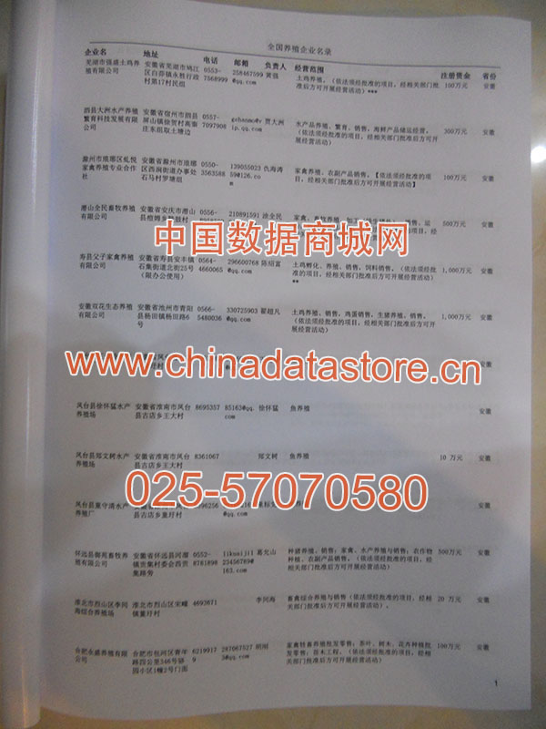 某省或直轄市 | 如上海、浙江養(yǎng)殖企業(yè)名單 | 80% - 90% | 600元 | 附贈一冊養(yǎng)殖紙質(zhì)印刷品 |