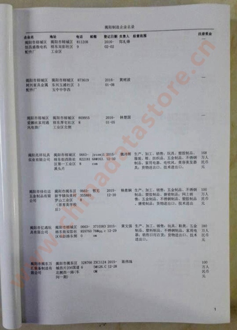 2021版最新揭陽(yáng)企業(yè)黃頁(yè)包括《揭陽(yáng)制造企業(yè)黃頁(yè)》、《揭陽(yáng)民營(yíng)企業(yè)黃頁(yè)》,現(xiàn)優(yōu)惠價(jià):280元/冊(cè)。每?jī)?cè)內(nèi)容包括:?jiǎn)挝幻Q、地址、郵編、電話、傳真、郵箱、經(jīng)營(yíng)范圍等;揭陽(yáng)企業(yè)黃頁(yè)涵蓋了近幾年來(lái)最新成立的、有一定規(guī)模的企業(yè),具有非常高的營(yíng)銷價(jià)值。有了這套黃頁(yè)開(kāi)展業(yè)務(wù)也有了針對(duì)性,也省去了盲目去尋找客戶名單而浪費(fèi)的時(shí)間了,工作效率也會(huì)有很大的提高。歡迎需要揭陽(yáng)企業(yè)黃頁(yè)的朋友及時(shí)聯(lián)系我們!