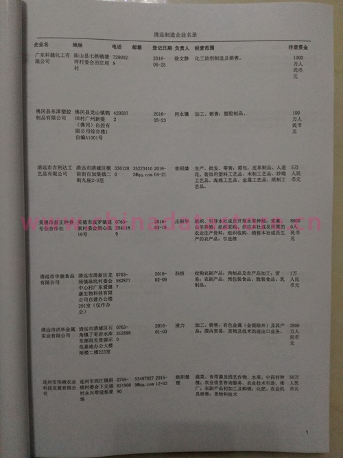 2021版最新清遠(yuǎn)企業(yè)黃頁包括《清遠(yuǎn)制造企業(yè)黃頁》、《清遠(yuǎn)民營企業(yè)黃頁》,現(xiàn)優(yōu)惠價:280元/冊。每冊內(nèi)容包括:單位名稱、地址、郵編、電話、傳真、郵箱、經(jīng)營范圍等;清遠(yuǎn)企業(yè)黃頁涵蓋了近幾年來最新成立的、有一定規(guī)模的企業(yè),具有非常高的營銷價值。有了這套黃頁開展業(yè)務(wù)也有了針對性,也省去了盲目去尋找客戶名單而浪費的時間了,工作效率也會有很大的提高。歡迎需要清遠(yuǎn)企業(yè)黃頁的朋友及時聯(lián)系我們!