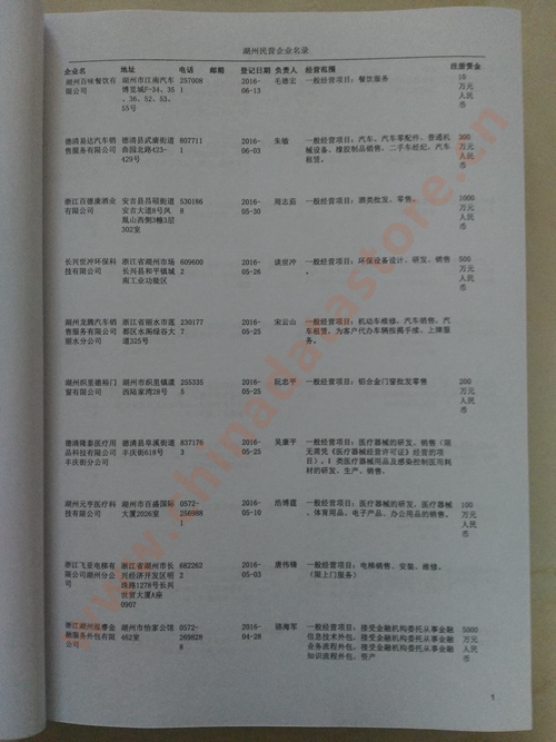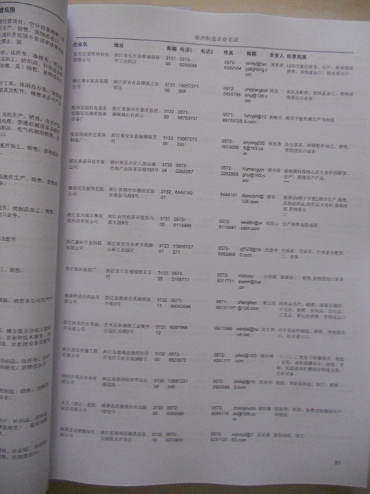 2021版最新湖州企業(yè)黃頁包括《湖州制造企業(yè)黃頁》、《湖州民營企業(yè)黃頁》,現(xiàn)優(yōu)惠價(jià):280元/冊。每冊內(nèi)容包括:單位名稱、地址、郵編、電話、傳真、郵箱、經(jīng)營范圍等;湖州企業(yè)黃頁涵蓋了近幾年來最新成立的、有一定規(guī)模的企業(yè),具有非常高的營銷價(jià)值。有了這套黃頁開展業(yè)務(wù)也有了針對性,也省去了盲目去尋找客戶名單而浪費(fèi)的時(shí)間了,工作效率也會(huì)有很大的提高。歡迎需要湖州企業(yè)黃頁的朋友及時(shí)聯(lián)系我們!