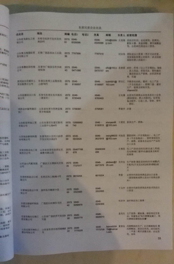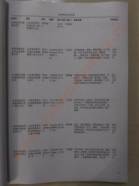 2021版最新東營企業(yè)黃頁包括《東營制造企業(yè)黃頁》、《東營民營企業(yè)黃頁》,現(xiàn)優(yōu)惠價(jià):280元/冊(cè)。每冊(cè)內(nèi)容包括:單位名稱、地址、郵編、電話、傳真、郵箱、經(jīng)營范圍等;東營企業(yè)黃頁涵蓋了近幾年來最新成立的、有一定規(guī)模的企業(yè),具有非常高的營銷價(jià)值。有了這套黃頁開展業(yè)務(wù)也有了針對(duì)性,也省去了盲目去尋找客戶名單而浪費(fèi)的時(shí)間了,工作效率也會(huì)有很大的提高。歡迎需要東營企業(yè)黃頁的朋友及時(shí)聯(lián)系我們!