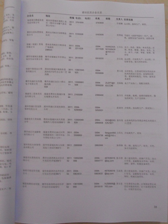 2021版最新莆田企業(yè)黃頁包括《莆田制造企業(yè)黃頁》、《莆田民營(yíng)企業(yè)黃頁》,現(xiàn)優(yōu)惠價(jià):280元/冊(cè)。每?jī)?cè)內(nèi)容包括:?jiǎn)挝幻Q、地址、郵編、電話、傳真、郵箱、經(jīng)營(yíng)范圍等;莆田企業(yè)黃頁涵蓋了近幾年來最新成立的、有一定規(guī)模的企業(yè),具有非常高的營(yíng)銷價(jià)值。有了這套黃頁開展業(yè)務(wù)也有了針對(duì)性,也省去了盲目去尋找客戶名單而浪費(fèi)的時(shí)間了,工作效率也會(huì)有很大的提高。歡迎需要莆田企業(yè)黃頁的朋友及時(shí)聯(lián)系我們!