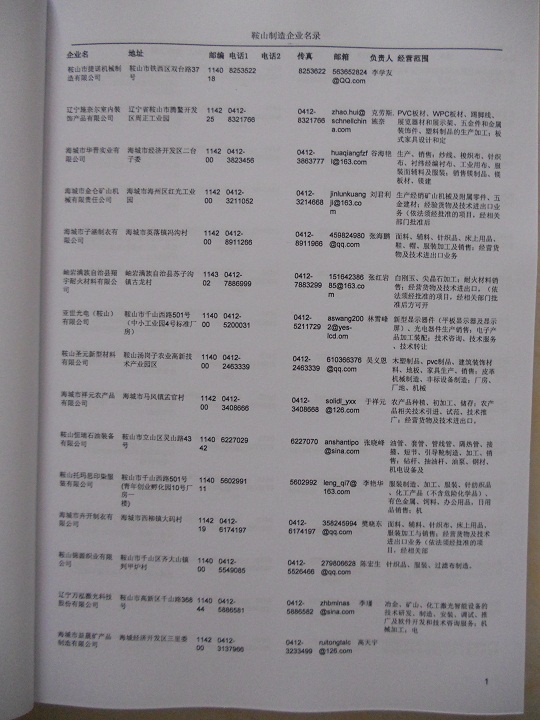 2021版最新鞍山企業(yè)黃頁(yè)包括《鞍山制造企業(yè)黃頁(yè)》、《鞍山民營(yíng)企業(yè)黃頁(yè)》,現(xiàn)優(yōu)惠價(jià):280元/冊(cè)。每?jī)?cè)內(nèi)容包括:?jiǎn)挝幻Q、地址、郵編、電話、傳真、郵箱、經(jīng)營(yíng)范圍等;鞍山企業(yè)黃頁(yè)涵蓋了近幾年來(lái)最新成立的、有一定規(guī)模的企業(yè),具有非常高的營(yíng)銷(xiāo)價(jià)值。有了這套黃頁(yè)開(kāi)展業(yè)務(wù)也有了針對(duì)性,也省去了盲目去尋找客戶名單而浪費(fèi)的時(shí)間了,工作效率也會(huì)有很大的提高。歡迎需要鞍山企業(yè)黃頁(yè)的朋友及時(shí)聯(lián)系我們!