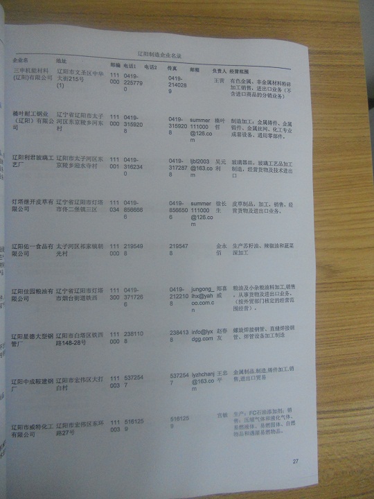 2021版最新遼陽(yáng)企業(yè)黃頁(yè)包括《遼陽(yáng)制造企業(yè)黃頁(yè)》、《遼陽(yáng)民營(yíng)企業(yè)黃頁(yè)》,現(xiàn)優(yōu)惠價(jià):280元/冊(cè)。每?jī)?cè)內(nèi)容包括:?jiǎn)挝幻Q(chēng)、地址、郵編、電話、傳真、郵箱、經(jīng)營(yíng)范圍等;遼陽(yáng)企業(yè)黃頁(yè)涵蓋了近幾年來(lái)最新成立的、有一定規(guī)模的企業(yè),具有非常高的營(yíng)銷(xiāo)價(jià)值。有了這套黃頁(yè)開(kāi)展業(yè)務(wù)也有了針對(duì)性,也省去了盲目去尋找客戶名單而浪費(fèi)的時(shí)間了,工作效率也會(huì)有很大的提高。歡迎需要遼陽(yáng)企業(yè)黃頁(yè)的朋友及時(shí)聯(lián)系我們!