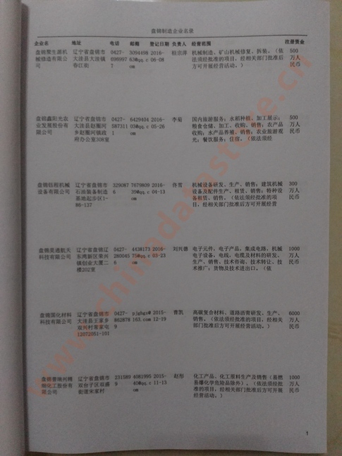 2021版最新盤錦企業(yè)黃頁包括《盤錦制造企業(yè)黃頁》、《盤錦民營企業(yè)黃頁》,現(xiàn)優(yōu)惠價:280元/冊。每冊內容包括:單位名稱、地址、郵編、電話、傳真、郵箱、經營范圍等;盤錦企業(yè)黃頁涵蓋了近幾年來最新成立的、有一定規(guī)模的企業(yè),具有非常高的營銷價值。有了這套黃頁開展業(yè)務也有了針對性,也省去了盲目去尋找客戶名單而浪費的時間了,工作效率也會有很大的提高。歡迎需要盤錦企業(yè)黃頁的朋友及時聯(lián)系我們!