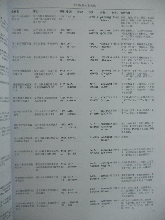 2021版最新營(yíng)口企業(yè)黃頁(yè)包括《營(yíng)口制造企業(yè)黃頁(yè)》、《營(yíng)口民營(yíng)企業(yè)黃頁(yè)》,現(xiàn)優(yōu)惠價(jià):280元/冊(cè)。每?jī)?cè)內(nèi)容包括:?jiǎn)挝幻Q、地址、郵編、電話、傳真、郵箱、經(jīng)營(yíng)范圍等;營(yíng)口企業(yè)黃頁(yè)涵蓋了近幾年來最新成立的、有一定規(guī)模的企業(yè),具有非常高的營(yíng)銷價(jià)值。有了這套黃頁(yè)開展業(yè)務(wù)也有了針對(duì)性,也省去了盲目去尋找客戶名單而浪費(fèi)的時(shí)間了,工作效率也會(huì)有很大的提高。歡迎需要營(yíng)口企業(yè)黃頁(yè)的朋友及時(shí)聯(lián)系我們!