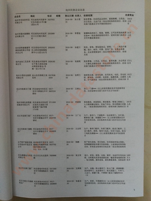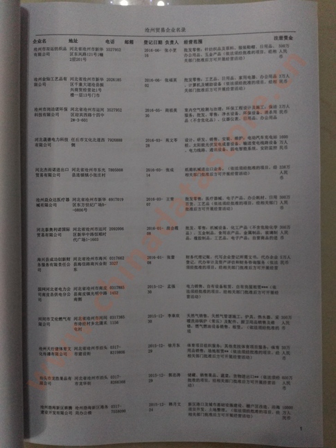 2021版最新滄州企業(yè)黃頁包括《滄州制造企業(yè)黃頁》、《滄州民營企業(yè)黃頁》,現(xiàn)優(yōu)惠價:280元/冊。每冊內(nèi)容包括:單位名稱、地址、郵編、電話、傳真、郵箱、經(jīng)營范圍等;滄州企業(yè)黃頁涵蓋了近幾年來最新成立的、有一定規(guī)模的企業(yè),具有非常高的營銷價值。有了這套黃頁開展業(yè)務(wù)也有了針對性,也省去了盲目去尋找客戶名單而浪費(fèi)的時間了,工作效率也會有很大的提高。歡迎需要滄州企業(yè)黃頁的朋友及時聯(lián)系我們!