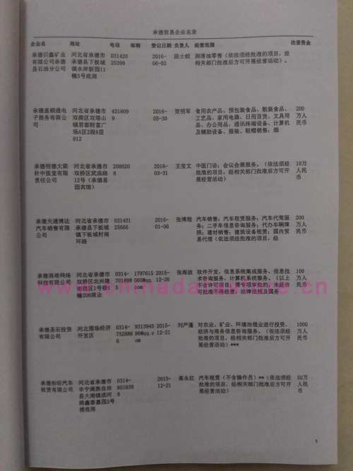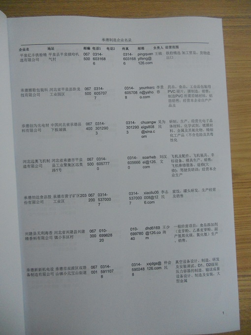 2021版最新承德企業(yè)黃頁(yè)包括《承德制造企業(yè)黃頁(yè)》、《承德民營(yíng)企業(yè)黃頁(yè)》,現(xiàn)優(yōu)惠價(jià):280元/冊(cè)。每?jī)?cè)內(nèi)容包括:?jiǎn)挝幻Q、地址、郵編、電話、傳真、郵箱、經(jīng)營(yíng)范圍等;承德企業(yè)黃頁(yè)涵蓋了近幾年來(lái)最新成立的、有一定規(guī)模的企業(yè),具有非常高的營(yíng)銷價(jià)值。有了這套黃頁(yè)開展業(yè)務(wù)也有了針對(duì)性,也省去了盲目去尋找客戶名單而浪費(fèi)的時(shí)間了,工作效率也會(huì)有很大的提高。歡迎需要承德企業(yè)黃頁(yè)的朋友及時(shí)聯(lián)系我們!
