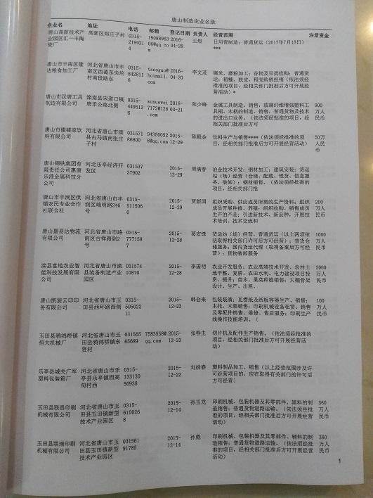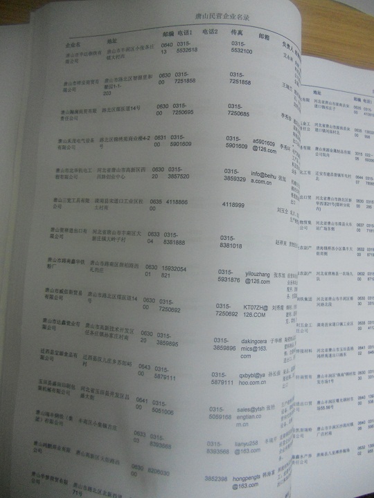 2021版最新唐山企業(yè)黃頁(yè)包括《唐山制造企業(yè)黃頁(yè)》、《唐山民營(yíng)企業(yè)黃頁(yè)》,現(xiàn)優(yōu)惠價(jià):280元/冊(cè)。每?jī)?cè)內(nèi)容包括:?jiǎn)挝幻Q(chēng)、地址、郵編、電話(huà)、傳真、郵箱、經(jīng)營(yíng)范圍等;唐山企業(yè)黃頁(yè)涵蓋了近幾年來(lái)最新成立的、有一定規(guī)模的企業(yè),具有非常高的營(yíng)銷(xiāo)價(jià)值。有了這套黃頁(yè)開(kāi)展業(yè)務(wù)也有了針對(duì)性,也省去了盲目去尋找客戶(hù)名單而浪費(fèi)的時(shí)間了,工作效率也會(huì)有很大的提高。歡迎需要唐山企業(yè)黃頁(yè)的朋友及時(shí)聯(lián)系我們!