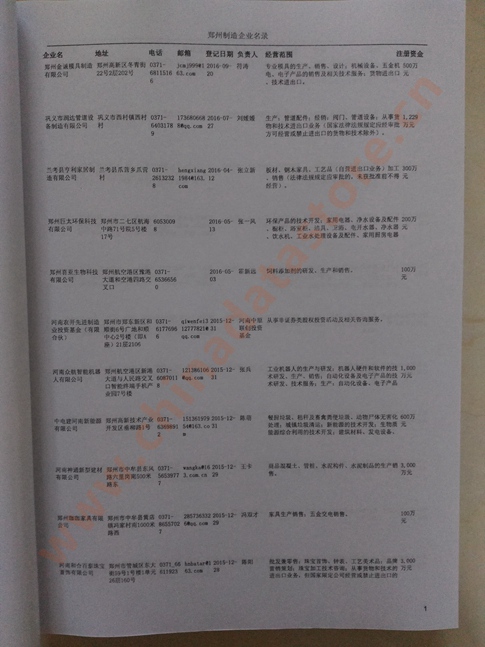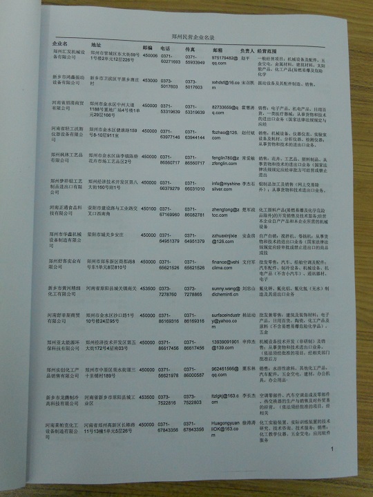 2021版最新鄭州企業(yè)黃頁包括《鄭州制造企業(yè)黃頁》、《鄭州民營企業(yè)黃頁》,現(xiàn)優(yōu)惠價:280元/冊。每冊內(nèi)容包括:單位名稱、地址、郵編、電話、傳真、郵箱、經(jīng)營范圍等;鄭州企業(yè)黃頁涵蓋了近幾年來最新成立的、有一定規(guī)模的企業(yè),具有非常高的營銷價值。有了這套黃頁開展業(yè)務也有了針對性,也省去了盲目去尋找客戶名單而浪費的時間了,工作效率也會有很大的提高。歡迎需要鄭州企業(yè)黃頁的朋友及時聯(lián)系我們!