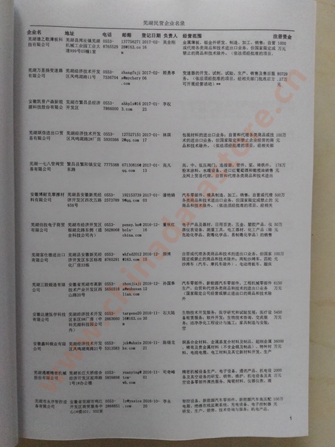 2021版最新蕪湖企業(yè)黃頁(yè)包括《蕪湖制造企業(yè)黃頁(yè)》、《蕪湖民營(yíng)企業(yè)黃頁(yè)》,現(xiàn)優(yōu)惠價(jià):280元/冊(cè)。每?jī)?cè)內(nèi)容包括:?jiǎn)挝幻Q(chēng)、地址、郵編、電話、傳真、郵箱、經(jīng)營(yíng)范圍等;蕪湖企業(yè)黃頁(yè)涵蓋了近幾年來(lái)最新成立的、有一定規(guī)模的企業(yè),具有非常高的營(yíng)銷(xiāo)價(jià)值。有了這套黃頁(yè)開(kāi)展業(yè)務(wù)也有了針對(duì)性,也省去了盲目去尋找客戶(hù)名單而浪費(fèi)的時(shí)間了,工作效率也會(huì)有很大的提高。歡迎需要蕪湖企業(yè)黃頁(yè)的朋友及時(shí)聯(lián)系我們!