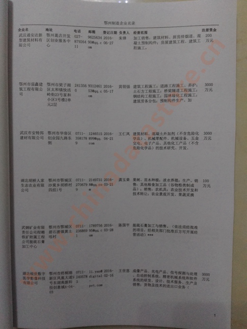 2021版最新鄂州企業(yè)黃頁包括《鄂州制造企業(yè)黃頁》、《鄂州民營企業(yè)黃頁》,現(xiàn)優(yōu)惠價(jià):280元/冊。每冊內(nèi)容包括:單位名稱、地址、郵編、電話、傳真、郵箱、經(jīng)營范圍等;鄂州企業(yè)黃頁涵蓋了近幾年來最新成立的、有一定規(guī)模的企業(yè),具有非常高的營銷價(jià)值。有了這套黃頁開展業(yè)務(wù)也有了針對性,也省去了盲目去尋找客戶名單而浪費(fèi)的時間了,工作效率也會有很大的提高。歡迎需要鄂州企業(yè)黃頁的朋友及時聯(lián)系我們!