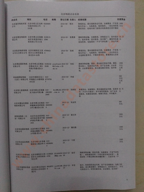 北京物流企業(yè)精準(zhǔn)名錄