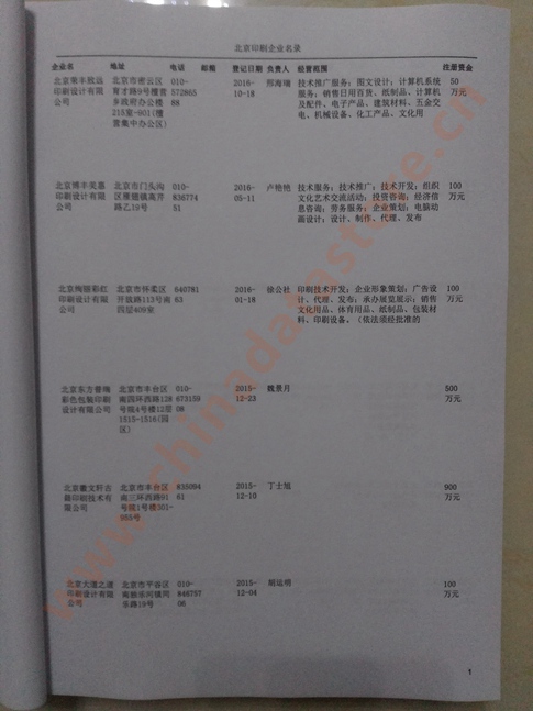 北京印刷企業(yè)黃頁 | 所有北京印刷企業(yè)黃頁 | 80% - 90% | 600元 | 附贈一冊北京印刷紙質(zhì)印刷品 |