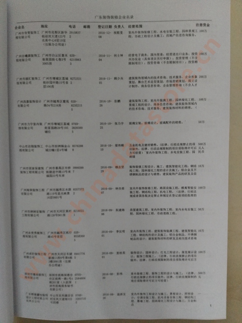 最新廣東裝飾裝修生產(chǎn)與貿(mào)易企業(yè)黃頁數(shù)據(jù)更新日期2024年12月最新,廣東裝飾裝修企業(yè)黃頁,都是具有一定規(guī)模的廣東裝飾裝修行業(yè)的注冊實(shí)體企業(yè),數(shù)據(jù)準(zhǔn)確率高,是您開展各項營銷活動的必備資料。企業(yè)名單包括:企業(yè)名稱、地址、電話(以上必有,以下選有)、傳真、郵箱、登記日期、經(jīng)營范圍、注冊資金等信息。廣東裝飾裝修企業(yè)黃頁數(shù)據(jù)為Excel格式,信息可任意修改、復(fù)制、打印、導(dǎo)出及導(dǎo)入到傳真、郵件群發(fā)等軟件中,無任何限制。