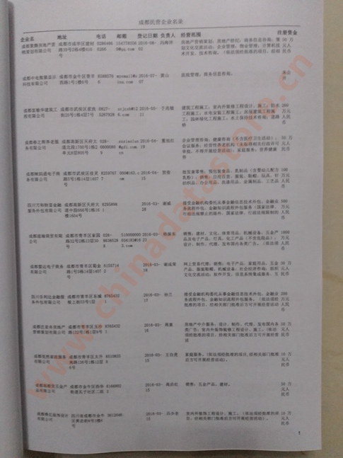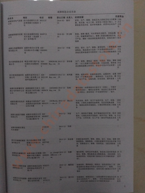 2021版最新成都企業(yè)黃頁(yè)包括《成都制造企業(yè)黃頁(yè)》、《成都民營(yíng)企業(yè)黃頁(yè)》,現(xiàn)優(yōu)惠價(jià):280元/冊(cè)。每?jī)?cè)內(nèi)容包括:?jiǎn)挝幻Q(chēng)、地址、郵編、電話、傳真、郵箱、經(jīng)營(yíng)范圍等;成都企業(yè)黃頁(yè)涵蓋了近幾年來(lái)最新成立的、有一定規(guī)模的企業(yè),具有非常高的營(yíng)銷(xiāo)價(jià)值。有了這套黃頁(yè)開(kāi)展業(yè)務(wù)也有了針對(duì)性,也省去了盲目去尋找客戶(hù)名單而浪費(fèi)的時(shí)間了,工作效率也會(huì)有很大的提高。歡迎需要成都企業(yè)黃頁(yè)的朋友及時(shí)聯(lián)系我們!