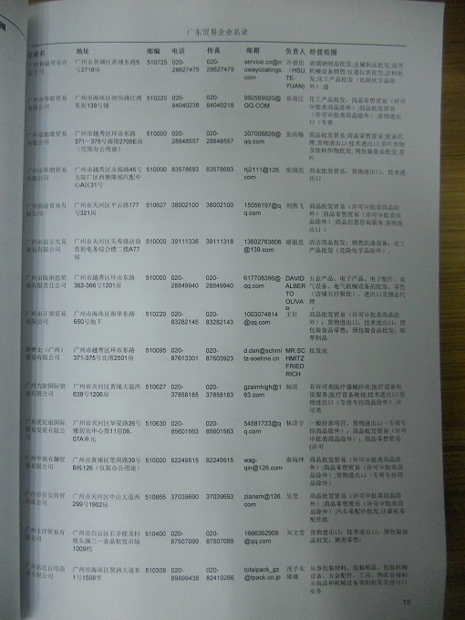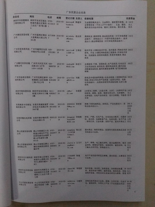 2021版最新廣東企業(yè)黃頁(yè)包括《廣東制造企業(yè)黃頁(yè)》、《廣東貿(mào)易企業(yè)黃頁(yè)》、《廣東民營(yíng)企業(yè)黃頁(yè)》共三冊(cè),優(yōu)惠價(jià):280元/冊(cè)。每?jī)?cè)內(nèi)容包括:?jiǎn)挝幻Q、地址、郵編、電話、傳真、郵箱、經(jīng)營(yíng)范圍等;廣東企業(yè)黃頁(yè)涵蓋了近幾年來(lái)最新成立的、有一定規(guī)模的企業(yè),具有非常高的營(yíng)銷價(jià)值。有了這套黃頁(yè)開(kāi)展業(yè)務(wù)也有了針對(duì)性,也省去了盲目去尋找客戶名單而浪費(fèi)的時(shí)間了,工作效率也會(huì)有很大的提高。歡迎需要廣東企業(yè)黃頁(yè)的朋友及時(shí)聯(lián)系我們!