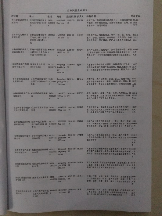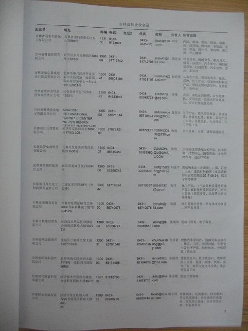 2021版最新吉林企業(yè)黃頁包括《吉林制造企業(yè)黃頁》、《吉林貿(mào)易企業(yè)黃頁》、《吉林民營企業(yè)黃頁》共三冊,優(yōu)惠價(jià):280元/冊。每冊內(nèi)容包括:單位名稱、地址、郵編、電話、傳真、郵箱、經(jīng)營范圍等;吉林企業(yè)黃頁涵蓋了近幾年來最新成立的、有一定規(guī)模的企業(yè),具有非常高的營銷價(jià)值。有了這套黃頁開展業(yè)務(wù)也有了針對性,也省去了盲目去尋找客戶名單而浪費(fèi)的時(shí)間了,工作效率也會有很大的提高。歡迎需要吉林企業(yè)黃頁的朋友及時(shí)聯(lián)系我們!