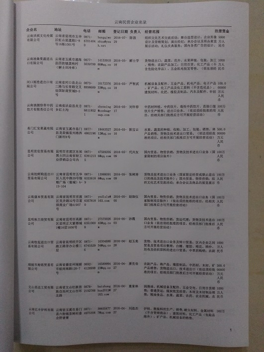 2021版最新云南企業(yè)黃頁包括《云南制造企業(yè)黃頁》、《云南貿易企業(yè)黃頁》、《云南民營企業(yè)黃頁》共三冊,優(yōu)惠價:280元/冊。每冊內容包括:單位名稱、地址、郵編、電話、傳真、郵箱、經(jīng)營范圍等;云南企業(yè)黃頁涵蓋了近幾年來最新成立的、有一定規(guī)模的企業(yè),具有非常高的營銷價值。有了這套黃頁開展業(yè)務也有了針對性,也省去了盲目去尋找客戶名單而浪費的時間了,工作效率也會有很大的提高。歡迎需要云南企業(yè)黃頁的朋友及時聯(lián)系我們!