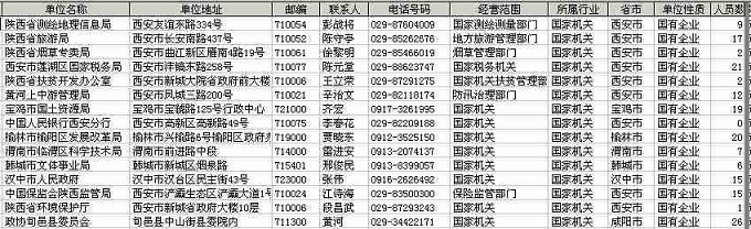 數(shù)據(jù)介紹:涵蓋國(guó)內(nèi)各個(gè)行業(yè)、各個(gè)省份的政府或事業(yè)單位信息,包括單位名、地址、聯(lián)系方式、負(fù)責(zé)人、人數(shù)、電話、行業(yè)說(shuō)明等。本數(shù)據(jù)庫(kù)適合信函營(yíng)銷(xiāo)、電話營(yíng)銷(xiāo)