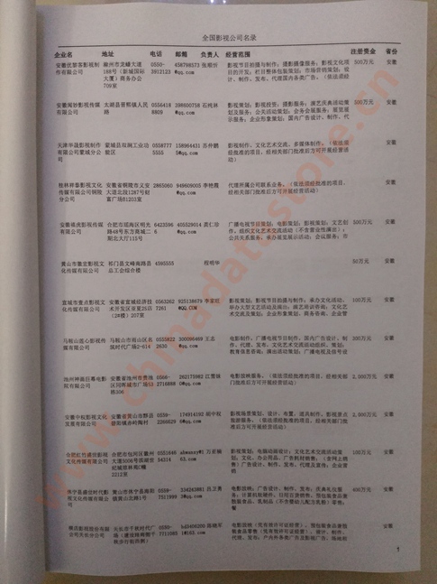某省或直轄市 | 如上海、浙江影視企業(yè)名單 | 80% - 90% | 600元 | 附贈一冊影視紙質(zhì)印刷品 |