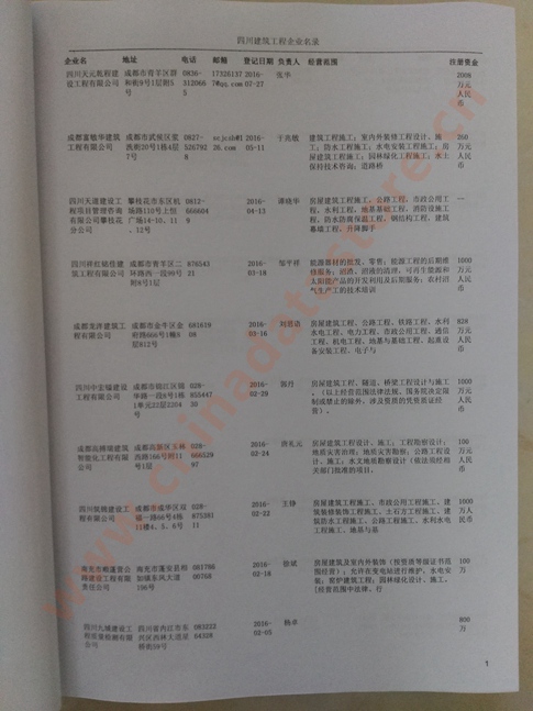 四川建筑工程企業(yè)黃頁 | 所有四川建筑工程企業(yè)黃頁 | 80% - 90% | 600元 | 附贈一冊四川建筑工程紙質(zhì)印刷品 |