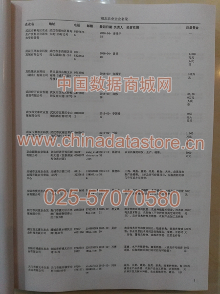 湖北農(nóng)業(yè)企業(yè)黃頁 | 所有湖北農(nóng)業(yè)企業(yè)黃頁 | 80% - 90% | 600元 | 附贈(zèng)一冊(cè)湖北農(nóng)業(yè)企業(yè)紙質(zhì)印刷品 |