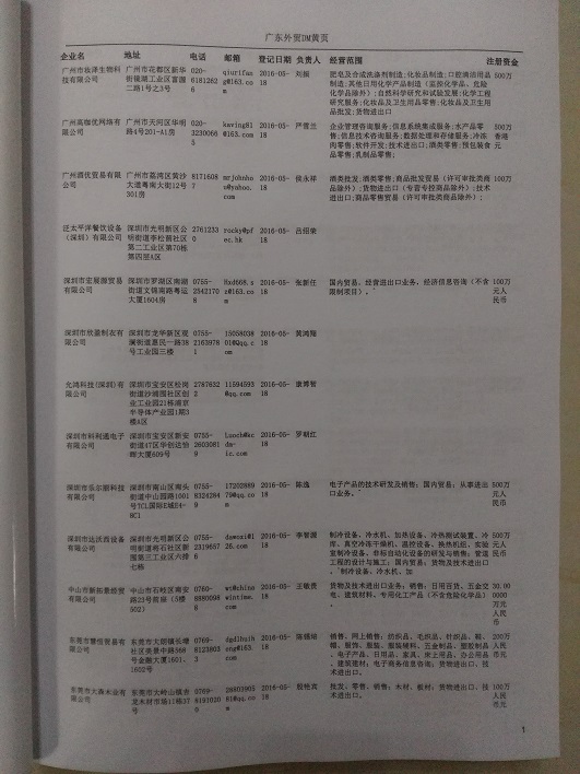 最全廣東外貿(mào)公司黃頁 包括2000年-2024年間外貿(mào)企業(yè)。
