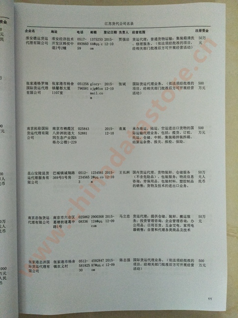 江蘇貨運(yùn)代理公司名單數(shù)據(jù)為Excel格式,信息可任意修改、復(fù)制、打印、導(dǎo)出及導(dǎo)入到傳真、郵件群發(fā)等軟件中,無(wú)任何限制。